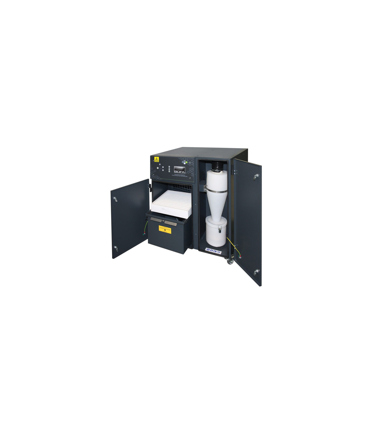 AD GoldSEAL Cyclone RS Denne enhed tilbyder en komplet løsning til udvinding, filtrering og genvinding af ædelmetaller. BOFA International er verdensførende inden for udvindings- og filtreringsteknologi. Partiklerne samles i en let aftagelig bakke, og HEPA-filteret kan forbrændes for at genvinde det ædle metal, der er opsamlet under filtreringsprocessen. Automatisk flowkontrol giver brugeren mulighed for at indstille passende luftmængder for at reducere støjniveauet og give yderligere beskyttelse af HEPA-filteret. Cyklonen gør det muligt at adskille ædelmetaller, før de når hovedfiltreringsområdet, hvilket giver mulighed for lettere og mere effektiv opsamling af ædelmetalpartikler samt forlængelse af hovedfilterets levetid.