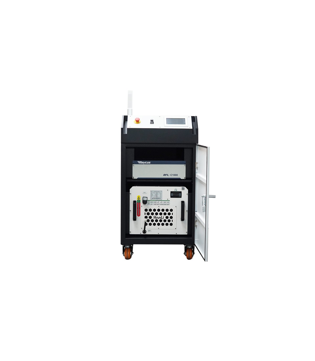 Laserrenser CW 1000W (Continuous Work) med kontinuerlig laserstråle til rengøring af tykke lag maling, rust, kulstofaflejringer, snavs osv. hurtigt og meget effektivt.