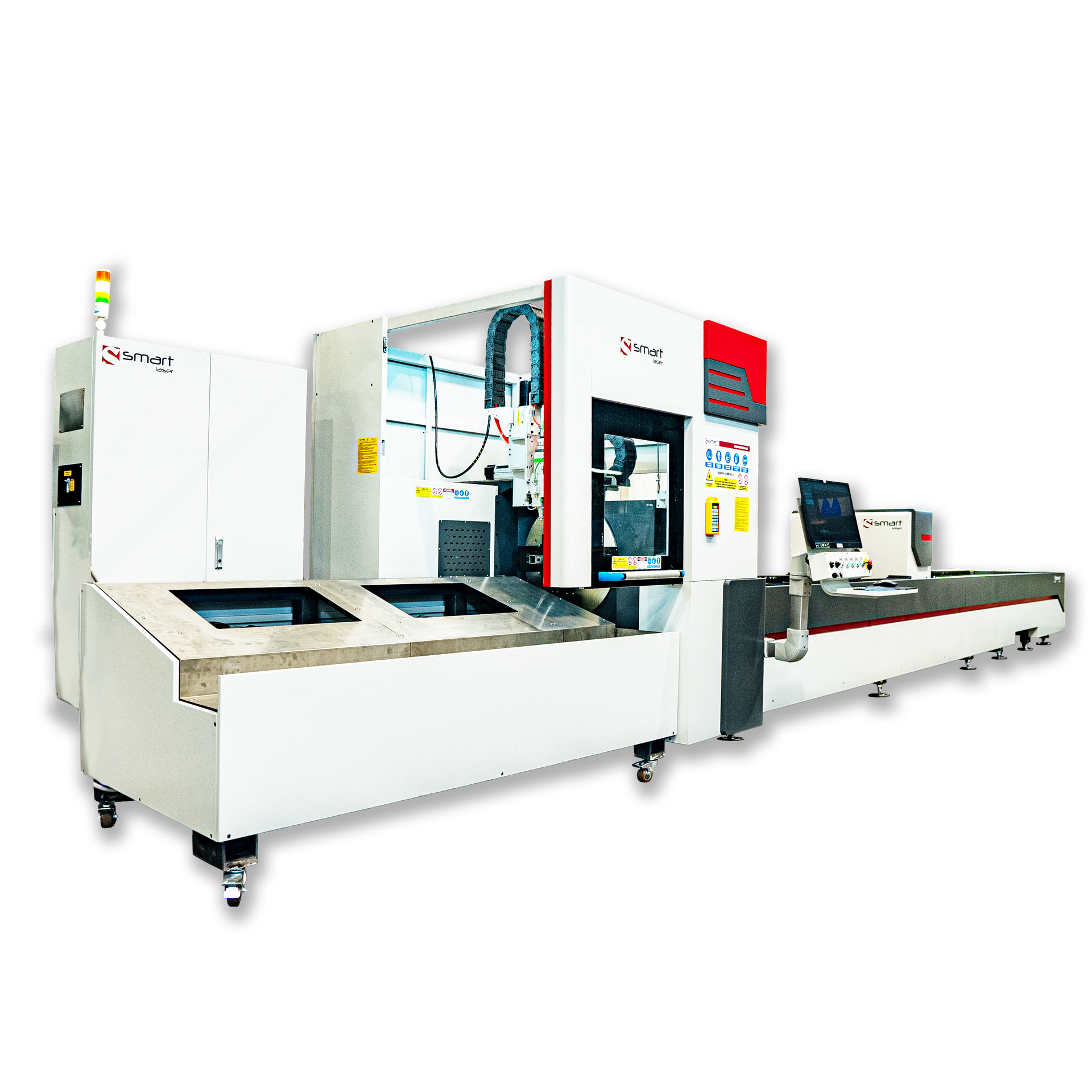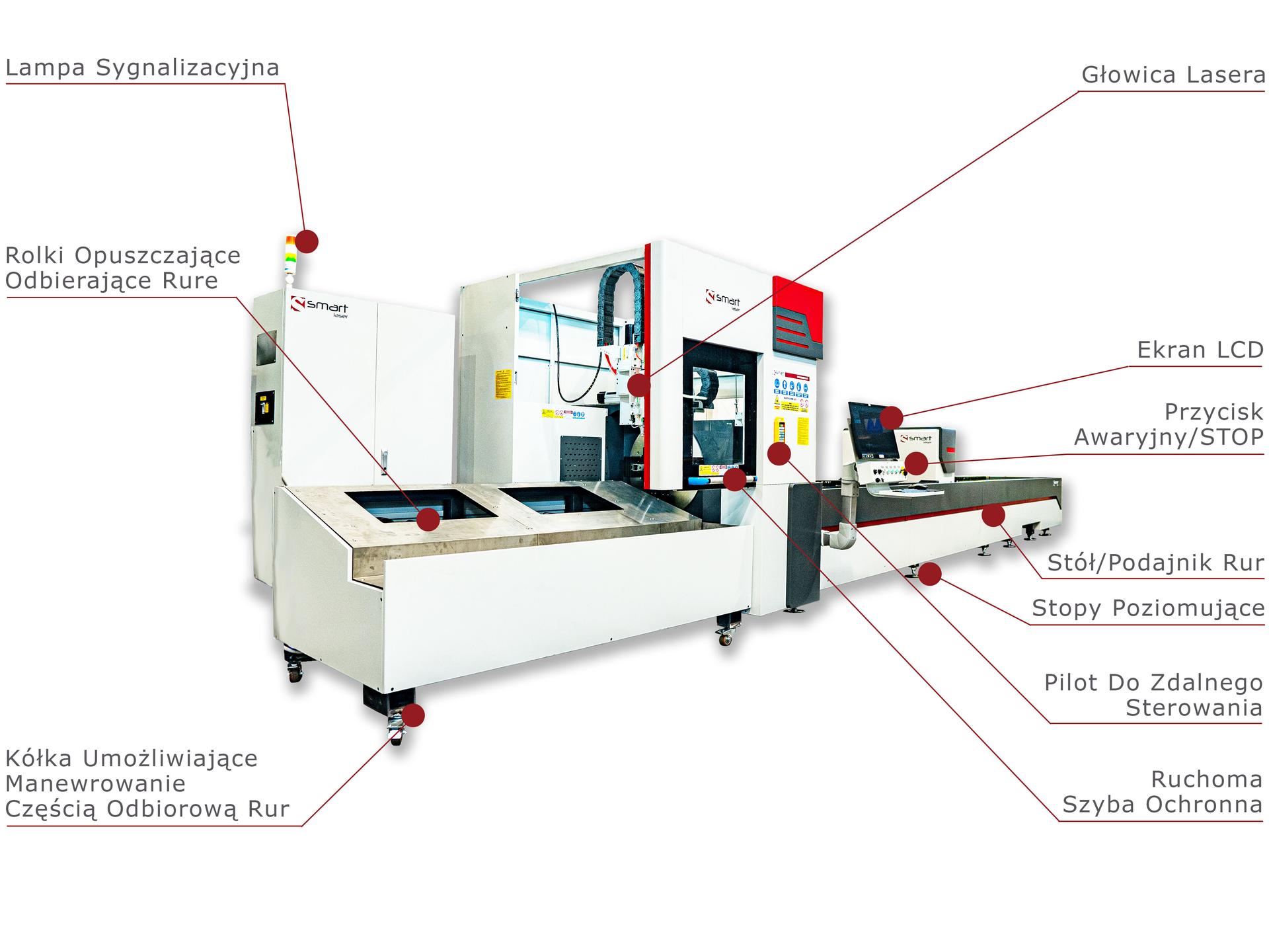 Przemysłowy, profesjonalny system laserowy Smart Laser przystosowany do cięcia rur i profili metalowych, o różnych przekrojach. Umożliwia szybkie cięcie przy jednoczesnym osiągnięciu gładkiej, płaskiej i pięknej krawędzi cięcia.