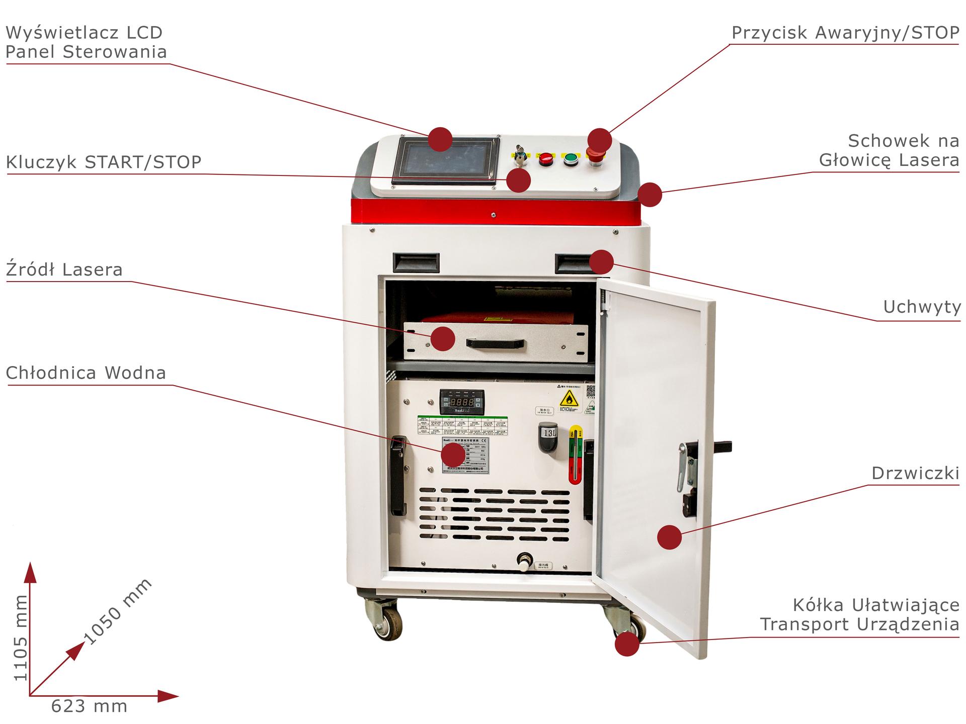 Oczyszczarka laserowa o mocy 300/500W doskonała do czyszczenia powierzchni z rdzy, nalotów eksploatacyjnych lub naturalnych, powłok lakierniczych, farby, zanieczyszczeń powstałych podczas procesów technologicznych.