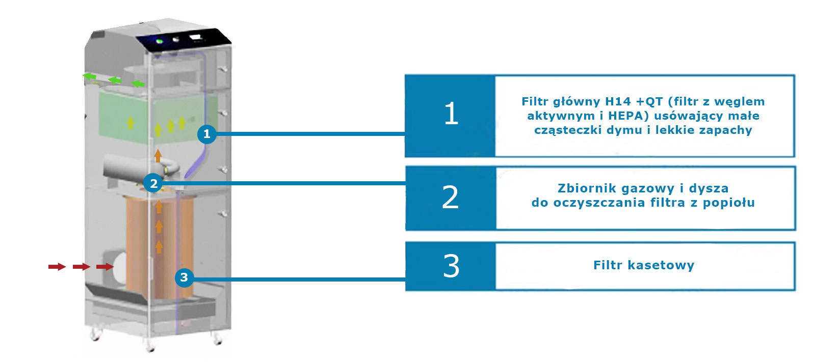 - Wielostopniowy filtr o dużej pojemności HEOP.