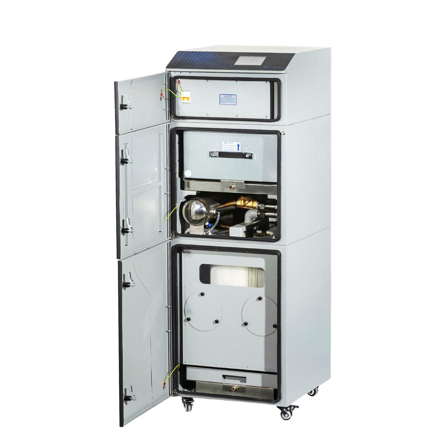 System Filtrujący PA-FGS800 to nowoczesne rozwiązanie do oczyszczania mikro- i nanocząsteczkowych gazów oraz zapachów powstających podczas obróbki drewna, sklejki i innych materiałów drewnopochodnych. Wyposażony w technologię PURE-AIR TECH, dba o zdrowie użytkowników poprzez eliminację szkodliwych substancji. Posiada szereg innowacyjnych funkcji, takich jak: PURE-AIR Inteligentna technologia oczyszczania powietrza (PIPT), technologia automatycznej kompensacji przepływu (AFCT), monitorowanie filtra i jakości powietrza w czasie rzeczywistym oraz wysokowydajna filtracja (HEFT).